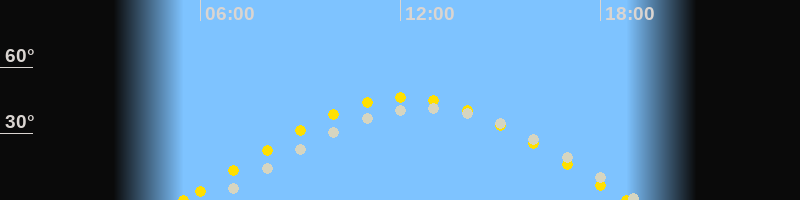 | Höchster Sonnenstand (Kulmination) | 12:09 Uhr (h = 46.4°) |