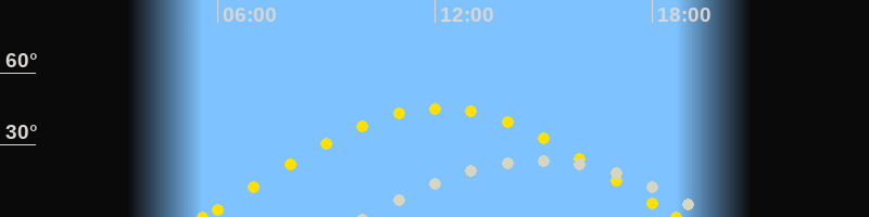 | Sonnenaufgang | 05:34 Uhr im Osten (αAz = 79.6°) |
