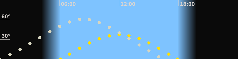 | Höchster Stand (Kulmination) | 08:25 Uhr (h=61.3°) |