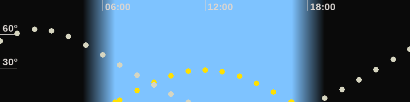 | Höchster Sonnenstand (Kulmination) | 11:54 Uhr (h = 28.5°) |