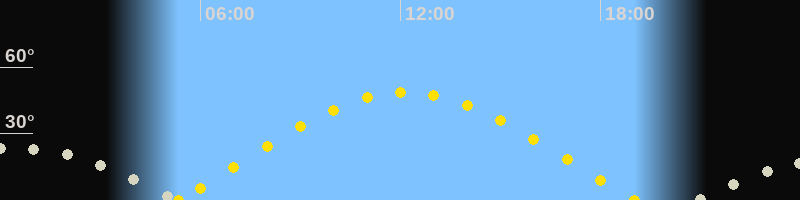 | Sonnenaufgang | 05:20 Uhr im Osten (αAz = 74.5°) |