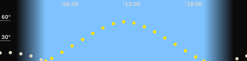 | Höchster Sonnenstand (Kulmination) | 12:06 Uhr (h = 57.9°) |