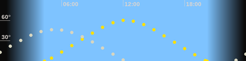 | Höchster Sonnenstand (Kulmination) | 12:16 Uhr (h = 60.3°) |