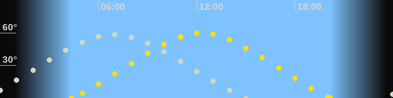 | Höchster Sonnenstand (Kulmination) | 12:16 Uhr (h = 59.9°) |