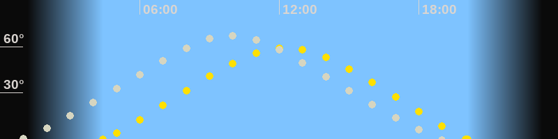 | Höchster Sonnenstand (Kulmination) | 12:16 Uhr (h = 59.3°) |