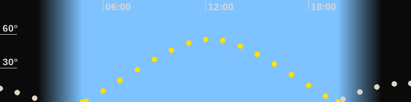 | Höchster Sonnenstand (Kulmination) | 12:15 Uhr (h = 55.4°) |