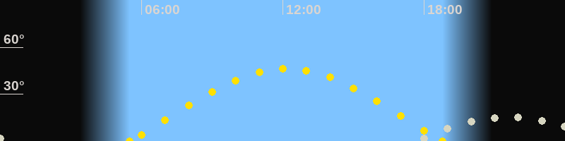 | Sonnenaufgang | 05:29 Uhr im Osten (αAz = 77.7°) |
