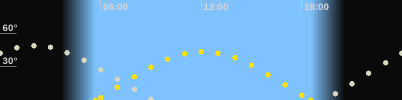 | Höchster Sonnenstand (Kulmination) | 12:07 Uhr (h = 43.8°) |