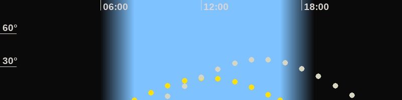 | Höchster Sonnenstand (Kulmination) | 12:21 Uhr (h = 19.8°) |