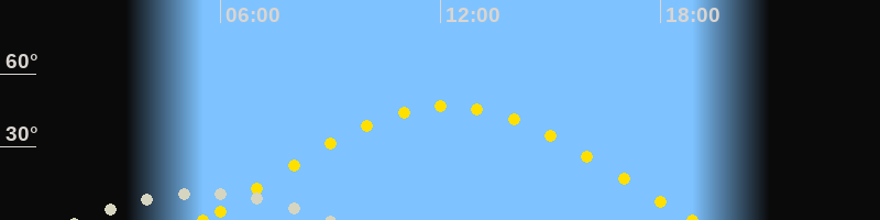 | Höchster Sonnenstand (Kulmination) | 12:11 Uhr (h = 46.7°) |