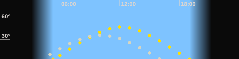 | Sonnenaufgang | 05:19 Uhr im Osten (αAz = 74.1°) |