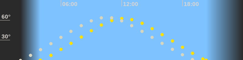 | Höchster Sonnenstand (Kulmination) | 12:10 Uhr (h = 62.5°) |