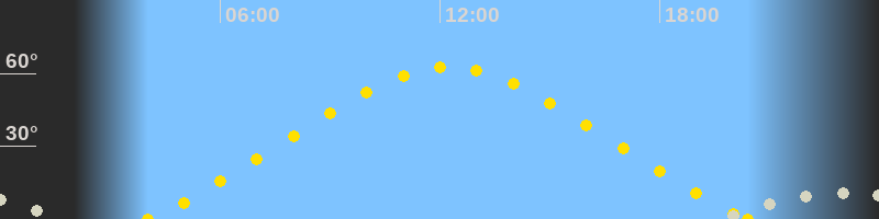 | Höchster Sonnenstand (Kulmination) | 12:13 Uhr (h = 62.6°) |