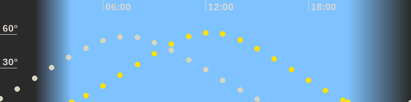 | Höchster Sonnenstand (Kulmination) | 12:15 Uhr (h = 61.5°) |