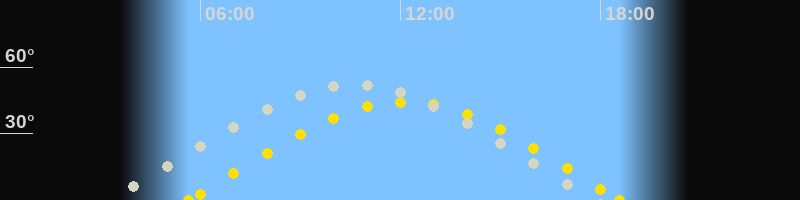 | Höchster Sonnenstand (Kulmination) | 12:07 Uhr (h = 44.3°) |