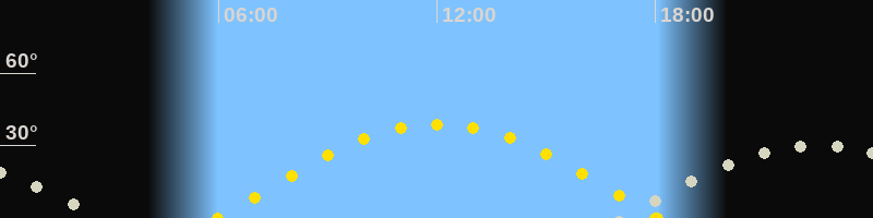 Sonnenuntergang18:03 Uhr im Westen (αAz = 270°)