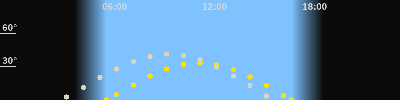 | Höchster Sonnenstand (Kulmination) | 11:57 Uhr (h = 33.1°) |