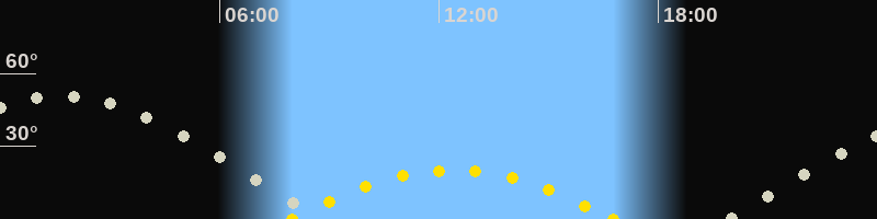 | Höchster Sonnenstand (Kulmination) | 12:22 Uhr (h = 20.2°) |