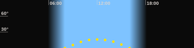 Höchster Sonnenstand (Kulmination)12:02 Uhr (h = 16.4°)