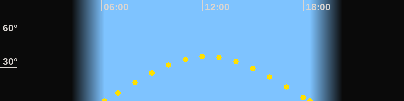 Höchster Sonnenstand (Kulmination)12:17 Uhr (h = 40.1°)