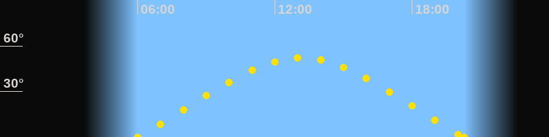 Sonnenaufgang06:00 Uhr im Osten (αAz = 68.9°)