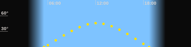 Höchster Sonnenstand (Kulmination)12:08 Uhr (h = 45.9°)