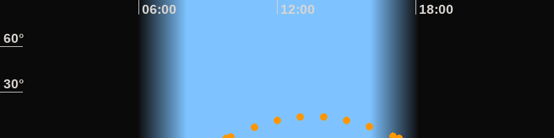 Höchster Stand (Kulmination)13:34 Uhr (h = 14.3°)
