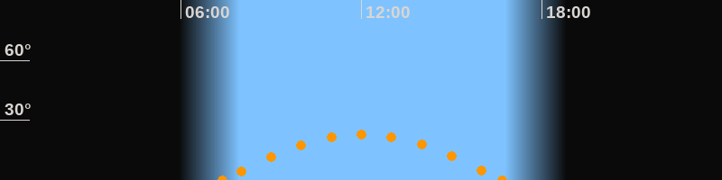 Höchster Stand (Kulmination)11:59 Uhr (h = 22.7°)