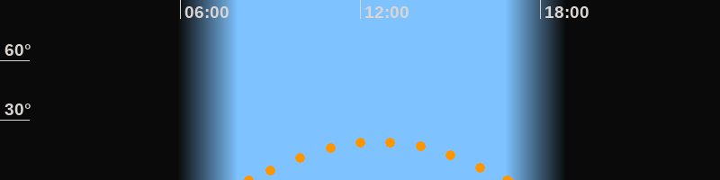Höchster Stand (Kulmination)12:38 Uhr (h = 19.5°)
