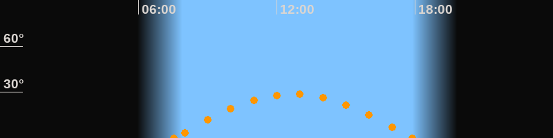 Höchster Stand (Kulmination)12:43 Uhr (h = 28.6°)