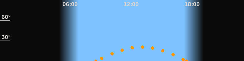 Untergang18:19 Uhr im Südwesten (αAz = 240.6°)
