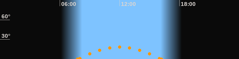 Höchster Stand (Kulmination)12:00 Uhr (h = 18.4°)
