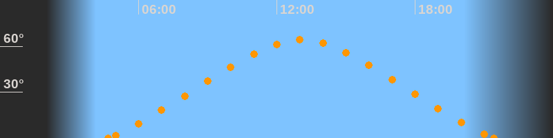 Höchster Stand (Kulmination)13:03 Uhr (h = 64.2°)