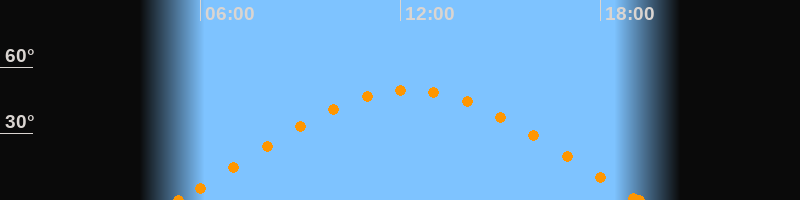 Höchster Stand (Kulmination)12:15 Uhr (h = 49.5°)