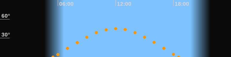 Höchster Stand (Kulmination)12:00 Uhr (h = 45°)