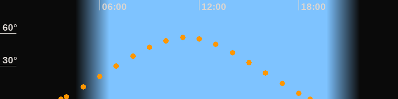 Aufgang03:40 Uhr im Nordosten (αAz = 61.8°)