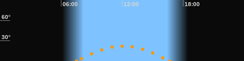 Höchster Stand (Kulmination)12:06 Uhr (h = 22.2°)