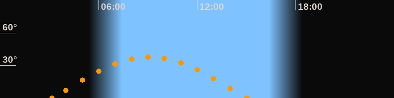 Höchster Stand (Kulmination)09:03 Uhr (h = 38.1°)