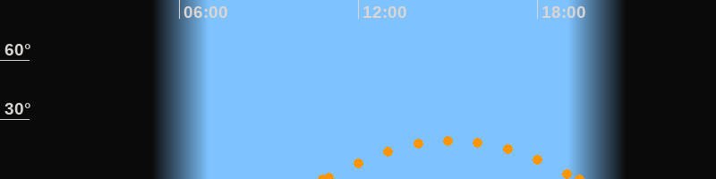 Untergang19:25 Uhr im Südwesten (αAz = 238.1°)