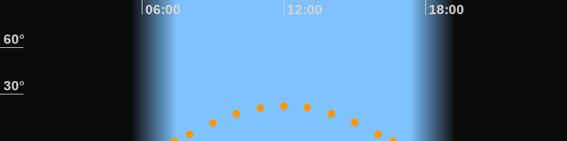 Höchster Stand (Kulmination)12:02 Uhr (h = 22.8°)