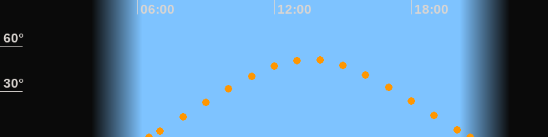 Aufgang06:30 Uhr im Osten (αAz = 70.2°)