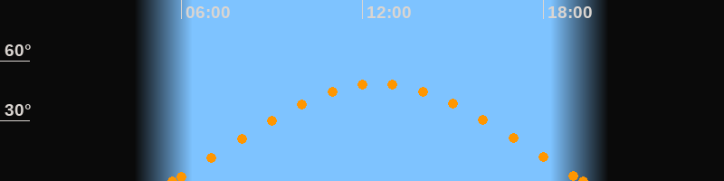 Höchster Stand (Kulmination)12:32 Uhr (h = 48.6°)