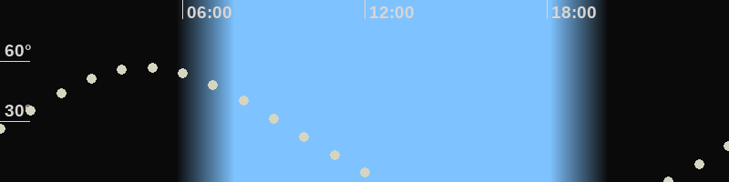 Höchster Stand (Kulmination)04:41 Uhr (h=56.9°)