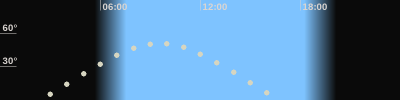 Höchster Stand (Kulmination)09:34 Uhr (h=51.4°)