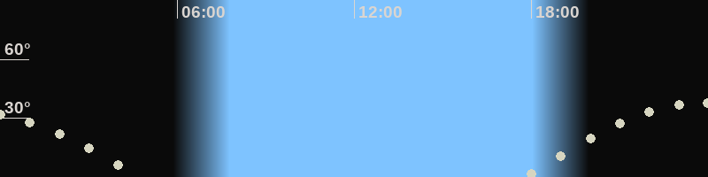 Höchster Stand (Kulmination)23:40 Uhr (h=37.4°)