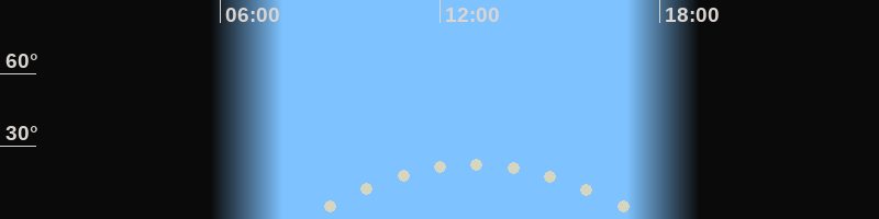 Höchster Stand (Kulmination)12:53 Uhr (h=22.4°)