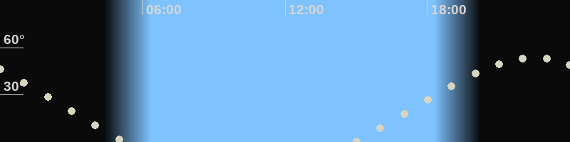 Höchster Stand (Kulmination)22:27 Uhr (h=53.7°)