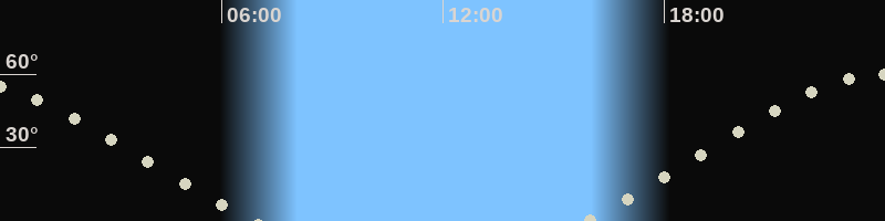 Höchster Stand (Kulmination)23:50 Uhr (h=59.6°)