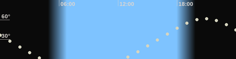 Höchster Stand (Kulmination)20:50 Uhr (h=61.9°)