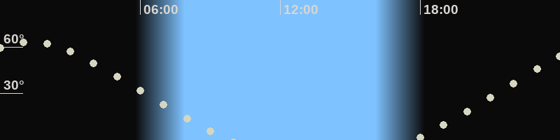 Höchster Stand (Kulmination)01:17 Uhr (h=63.1°)